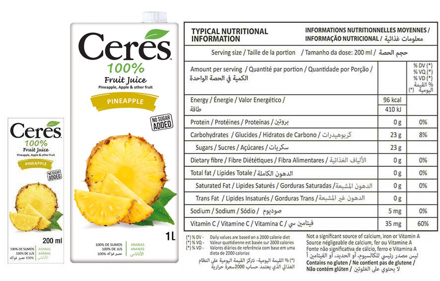 Ingredients: Pineapple juice, Apple juice, Grape juice, vitamin C (E300).