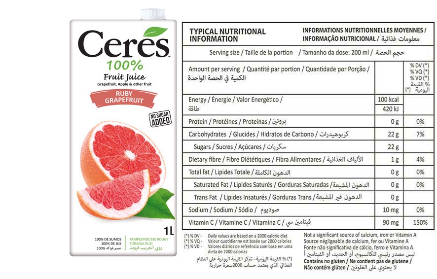 Ingredients: Ruby grapefruit juice, Apple juice, Grape juice, Vitamin C (E300).